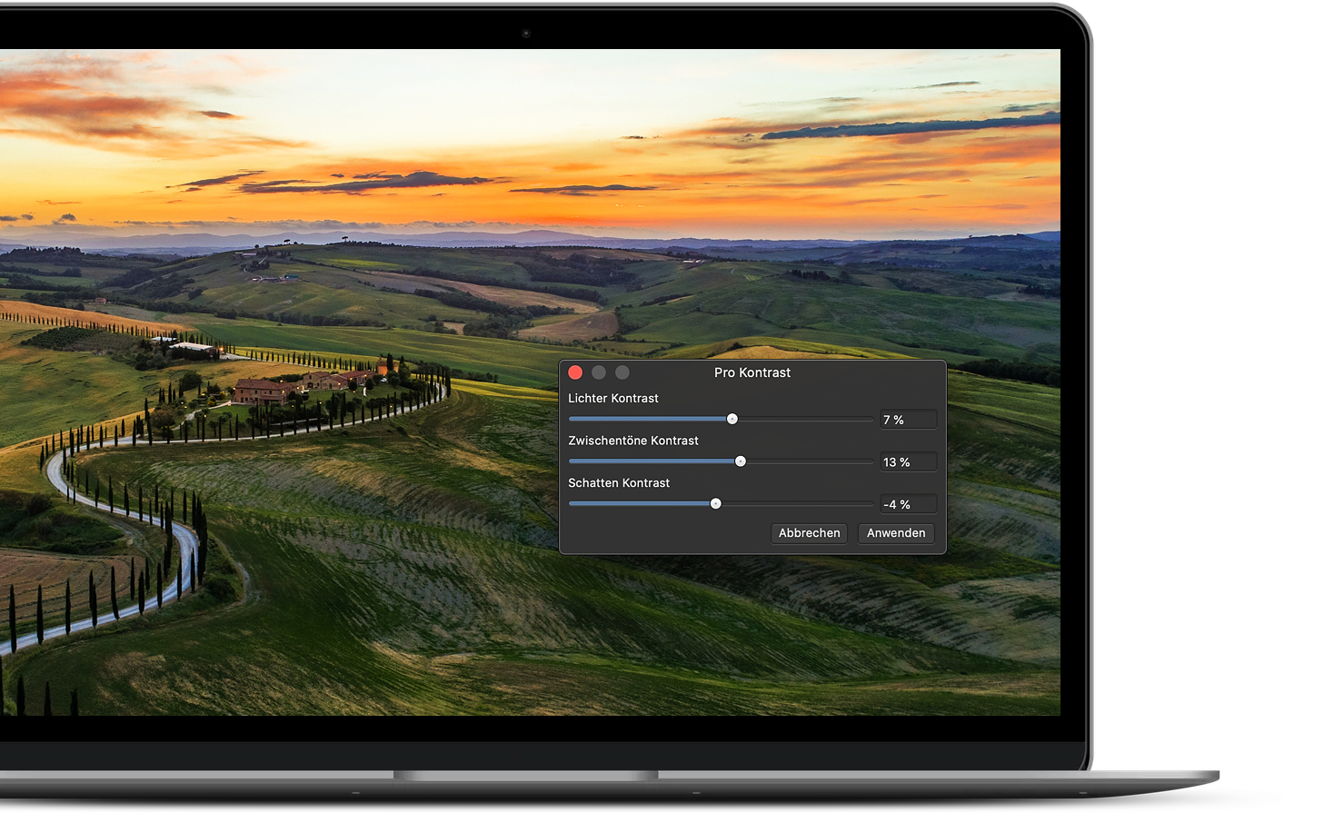 Eines meiner Lieblings-Makros ist aber der „ProKontrast“. Über einfache Schieberegler kannst du hierüber die Kontraste deiner Schatten, Zwischentöne und Lichter losgelöst voneinander einstellen. Das führt zu besonders dynamischen Bildergebnissen, die sonst nur mit komplizierten Luminanzmasken möglich wären.