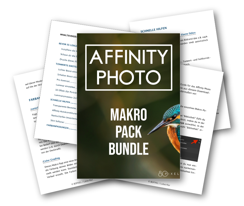 Mit dem Kauf dieses Makro-Pack-Bundles erhältst du ganze 23 Makros aus sechs unterschiedlichen Kategorien (Packs), die du für die verschiedensten Bildbearbeitungszwecke einsetzen kannst. Mehr Infos weiter unten.