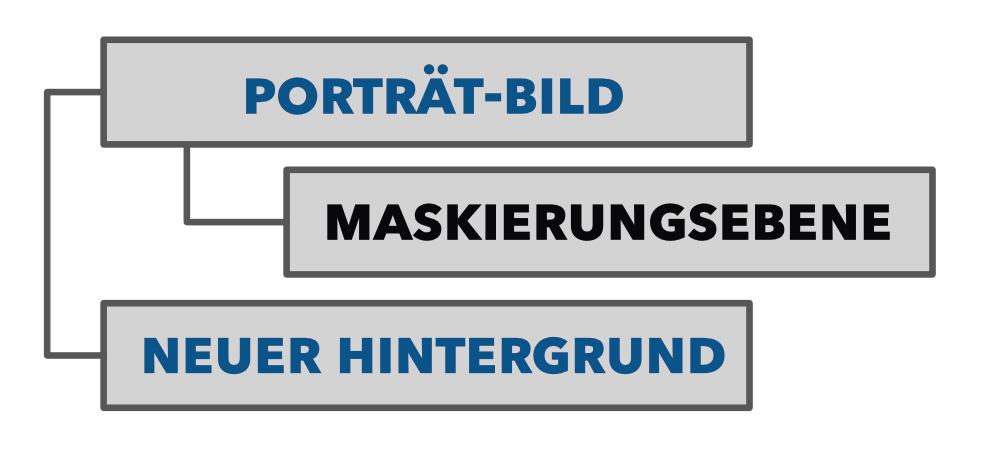 Nehmen wir an, du hast ein Porträt-Bild, bei dem du den Hintergrund austauschen möchtest. Dafür musst du den ursprünglichen Hintergrund vom Porträt-Bild zunächst unsichtbar maskieren, damit du anschließend ein neues Bild als Hintergrund unter diese Ebene legen kannst. Wie gehst du vor?