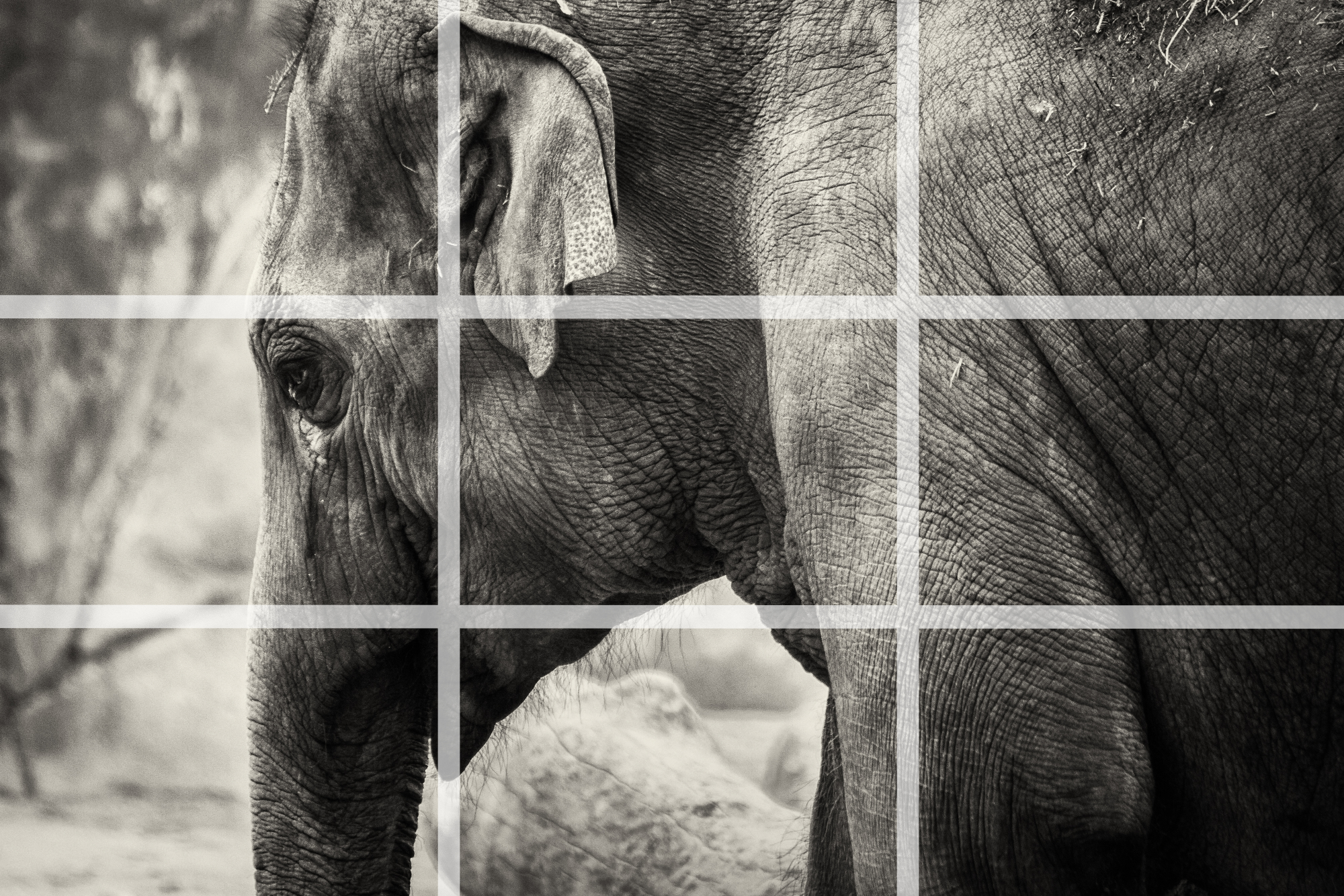 - Der Kopf des Elefanten, als zentrales Element, wurde positioniert nach der 2/3-Regel