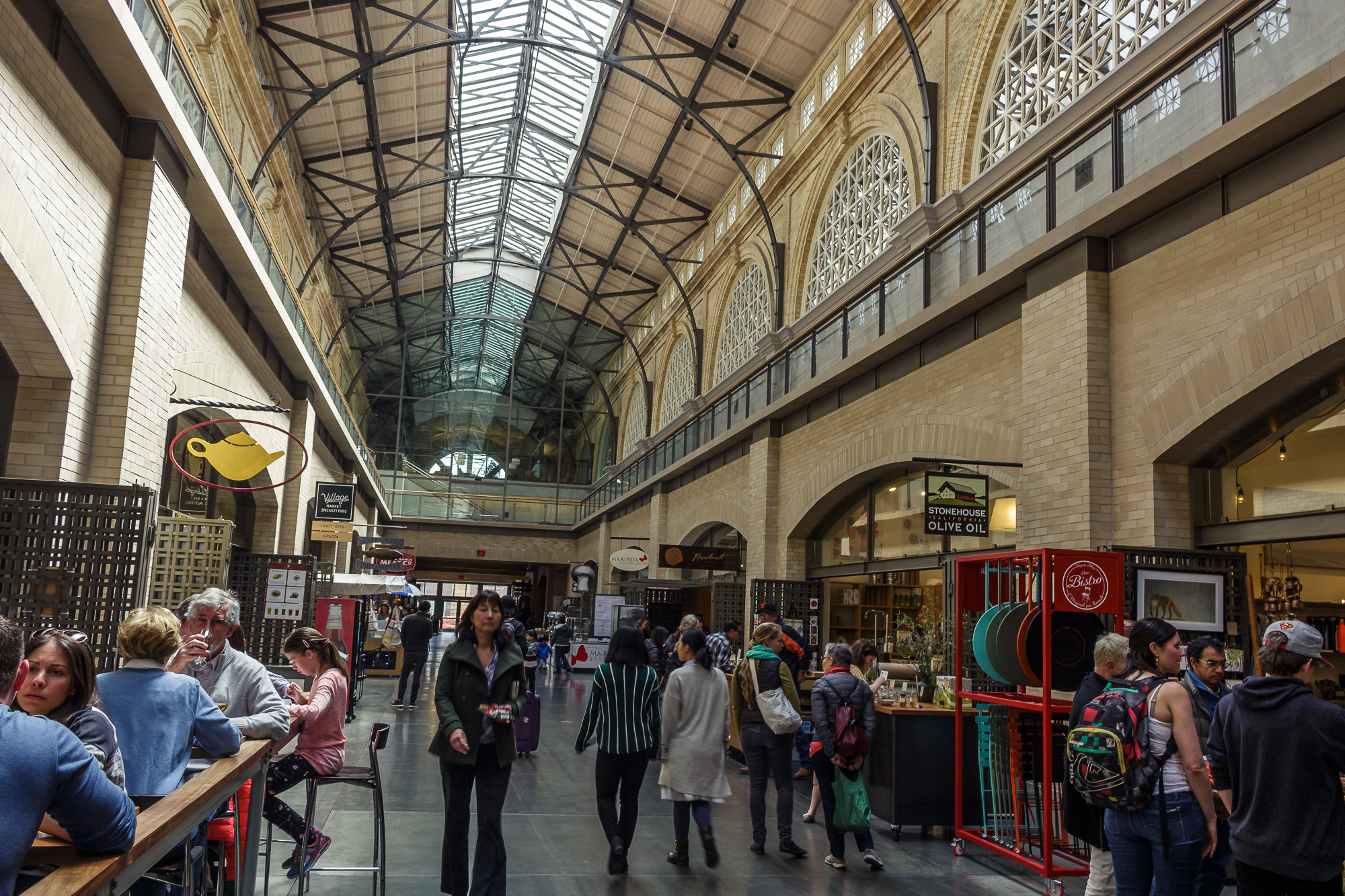 Wer auf Shoppen nicht verzichten möchte, aber trotzdem etwas anderes als die typischen Souvenirläden sucht, wird vielleicht beim Ferry Building fündig. Bis zum Bau der Brücken von San Francisco war das Fährgebäude eines der größten Umschlagplätze weltweit. Auch heute wird es noch als solches genutzt, ist aber vor allem auch durch seinen Marktplatz im Inneren des architektonisch interessanten Gebäudes bekannt. Hier finden sich einige Feinschmecker-Restaurants, aber auch kleinere „Marktgeschäfte“, die überwiegend lokale Naturprodukte verkaufen. Ein schöner Ort, um Abseits des Tourismus etwas runter zu kommen. Von den Fähranlegestellen hat man außerdem einen guten Blick auf die Bay Bridge.