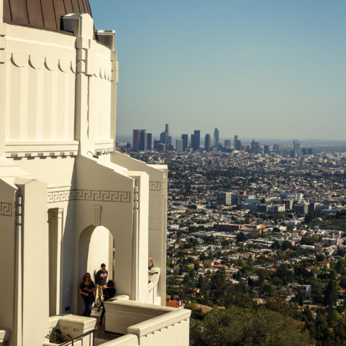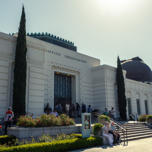 Ordentlich gestärkt fahre ich weiter zu den Hollywood Hills, welche nicht weit vom Hollywood Boulevard gelegen sind. Mein Hauptziel ist das Griffith Observatorium, welches gut vom Parkplatz an der Vermont Avenue erreicht werden kann. Bereits bei der Auffahrt des Berges, dem Mount Hollywood, fallen die vielen großen Villen auf, in denen viele Stars Immobilien besitzen. Nach kurzer Zeit erreicht man die Parkplätze, welche am unteren Teil der Straße sogar kostenlos sind. Das noch etwas höher gelegene Griffith Observatorium kann von hier leicht zu Fuß erreicht werden. Vielen dürfte das Planetarium als Drehort von zahlreichen Filmen bekannt sein, zuletzt beispielsweise für „La La Land“. Mir war der Ort das erste Mal in dem Spiel „GTA V“ aufgefallen.