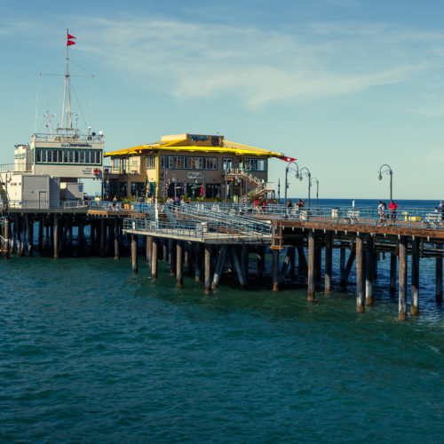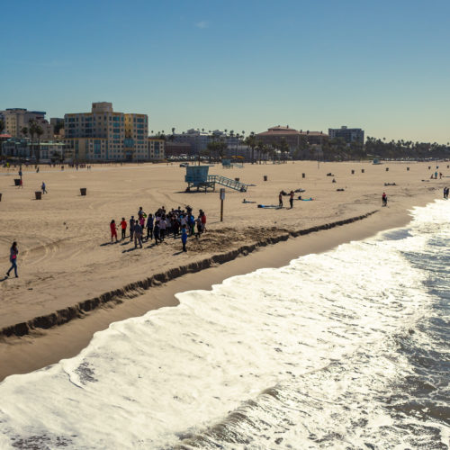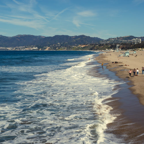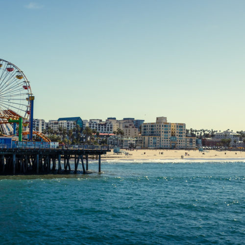 Mit meinem Mietwagen fahre ich zunächst zum Santa Monica Beach. Der lange Sandstrand am Pazifik lädt zu einem gemütlichen Spaziergang ein, bei dem man das bunte Treiben von Surfern, Skatern, Joggern und anderen Besuchern genießen kann. Auch der berühmte Santa Monica Pier befindet sich natürlich hier, bei dem man sich auf der Achterbahn oder dem Riesenrad die frische Meeresluft um die Ohren wehen lassen kann. Oder man genießt ganz einfach die schöne Aussicht auf Pazifik und Strand.
