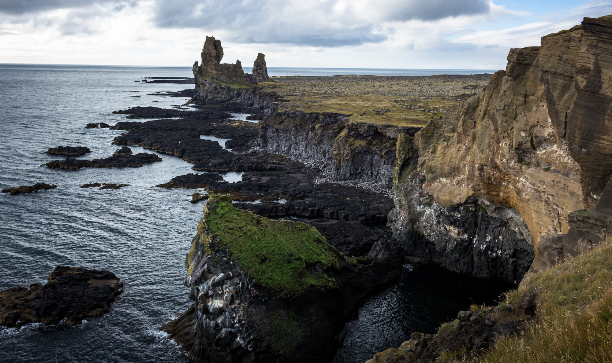 Der schwarze Sandstrand Djúpalónssandur liegt am Fuße des Gletschervulkans Snæfellsjökull. Den schwarzen Sand verdankt der Strand einem Vulkanausbruch, dessen Lava fast bis zum Meer floss. Neben dem Strand beeindrucken aber auch die Felsformationen die sich am Strand und entlang der Küste erheben.